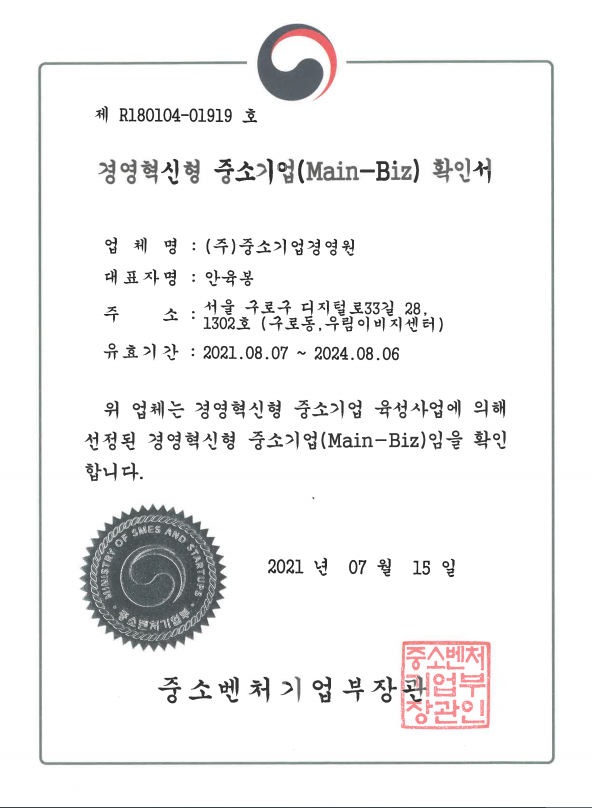 메인비즈 인증