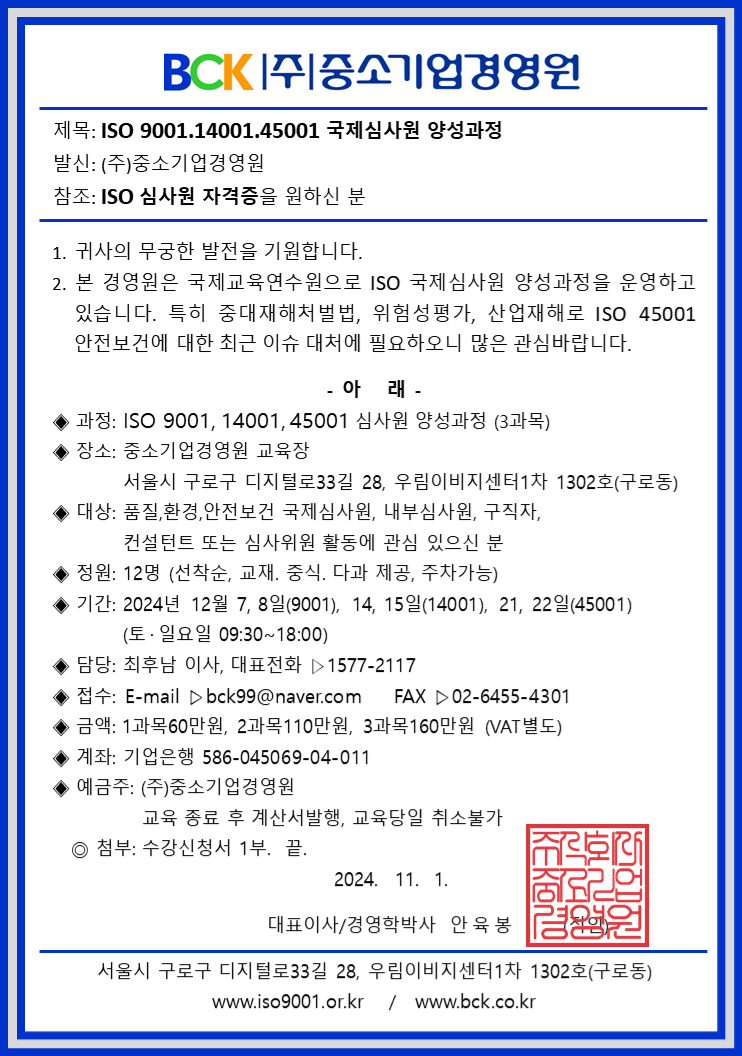 ISO 국제심사원 양성과정 신청